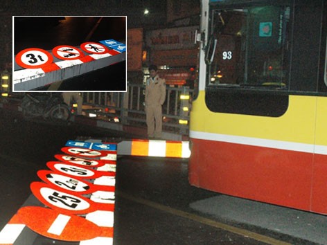 Ngoài ra, trên thanh giới hạn chiều cao này còn gắn các biển báo cấm các loại phương tiện có chiều cao hơn 2,2m, trọng tải trên 3 tấn và chỉ cho phép ô tô con và xe gắn máy lưu thông trên cầu.