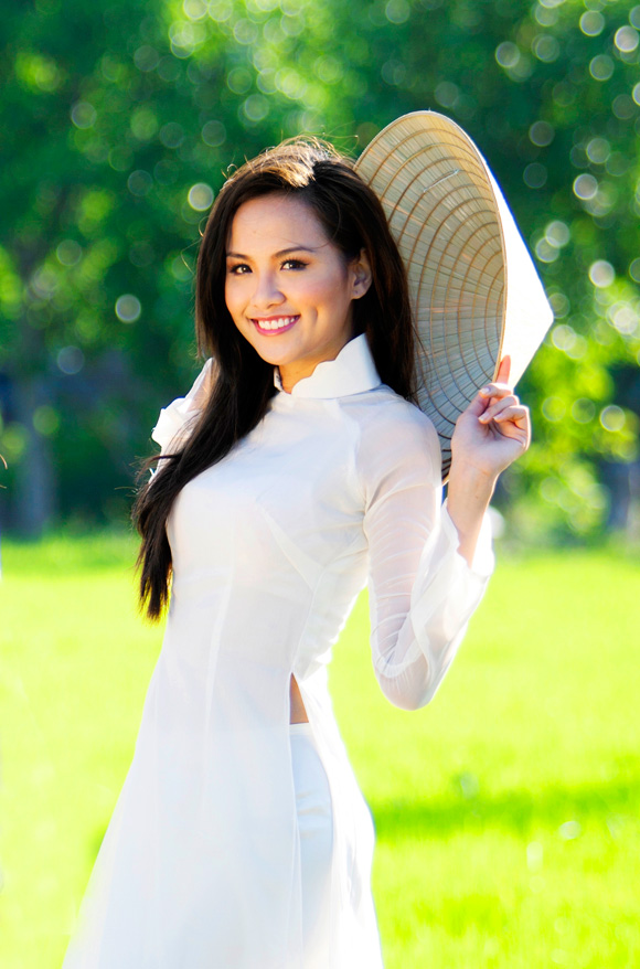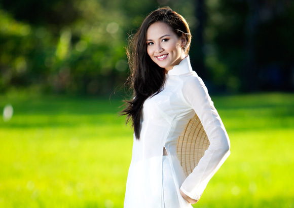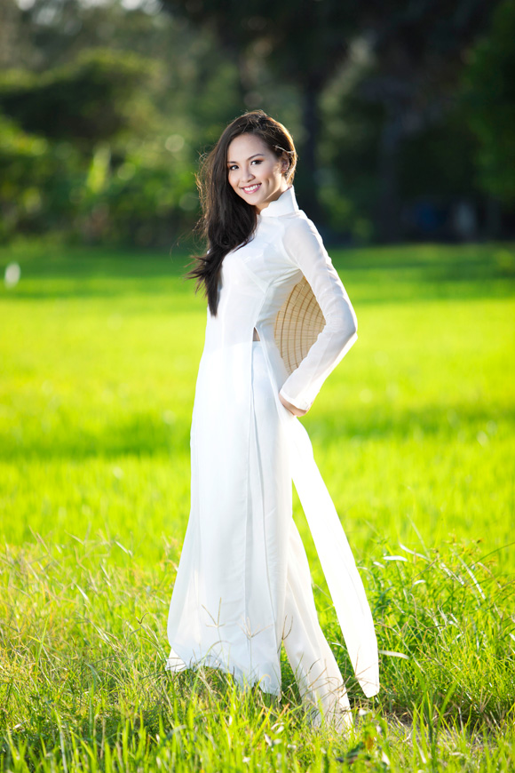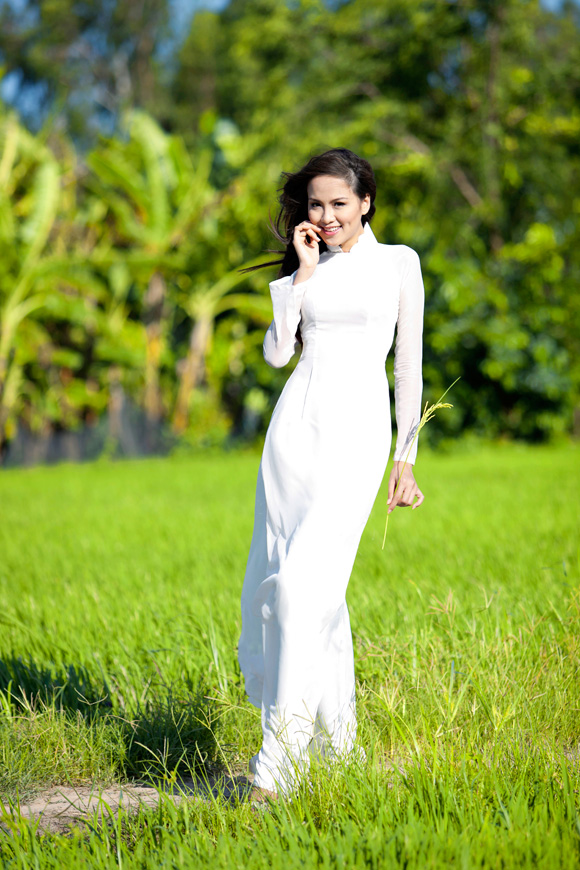 Là một hoa hậu và thường xuyên trình diễn thời trang với nhiều loại váy áo nhưng Diễm Hương vẫn luôn ngưỡng mộ và yêu thích vẻ đẹp của tà áo dài truyền thống. Trong bộ ảnh mới nhất, chị ấy khoe vẻ đẹp trong sáng và nữ tính với áo dài trắng giữa cánh đồng đồng lúa xanh mướt và đạo cụ là chiếc nón lá.