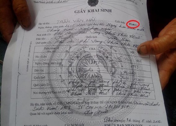 Trước đó, ngày 22/9, em Hải cùng gia đình đến bộ phận một cửa UBND huyện Phú Vang để làm thủ tục sửa đổi giấy khai sinh, điều chỉnh tên Trần Văn Hải thành Trần Thị Hải và sửa giới tính từ nam sang nữ.