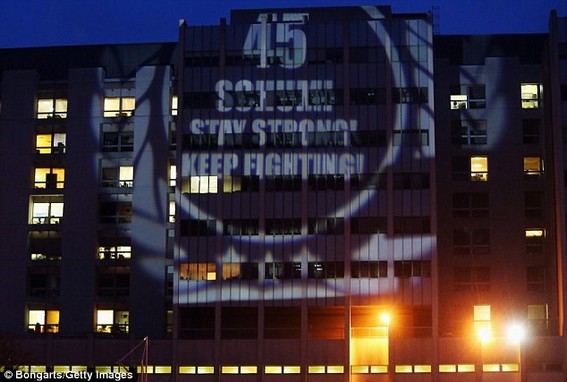 Đèn laser tạo số 45 trên tường bệnh viện ở Grenoble mừng sinh nhật Michael Schumacher