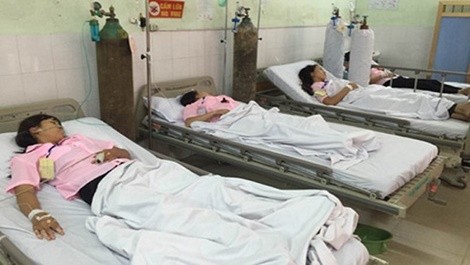 Các nạn nhân vụ ngộ độc được điều trị tại bệnh viện (Ảnh: VOV)