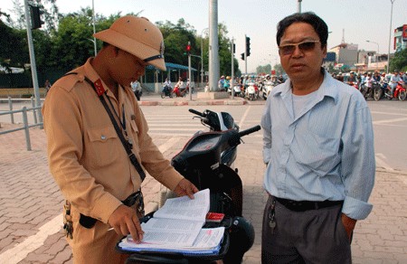 Cảnh sát giao thông Hà Nội xử phạt vi phạm giao thông.