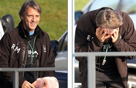 Chiều 16-11 (theo giờ Việt Nam), Roberto Mancini đã khiến các học trò, báo giới được một phen cười ngả cười nghiêng khi đeo mặt nạ trợ lý David Platt đến sân tập và phòng họp báo của Man City…