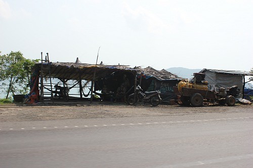 Xe chúng tôi tấp vào một chòi ven đường. Thấy xe lạ, một người đàn ông đeo kính đen, mặc đồ rằn ri, ngồi rít thuốc liên tục, mắt cứ ngó nghiêng dò xét mọi động tĩnh xung quanh. Người bạn đi cùng vội ghé thầm tai tôi: “Thằng cha này chắc xem mình có phải nhà báo, công an không đó". Để tránh mặt, chúng tôi liền bước qua phía bên kia đường. Còn đang lạc giữa mê cung của các biển hiệu chúng tôi bị hai thanh niên của một căn chòi gần đó kéo vội vào và nói: “Các anh vô chòi em mà ngồi uống nước, rồi em đưa “hàng” lên cho tha hồ mà chọn. Các anh muốn có người ngồi tâm sự cho vui tai, thích thì chơi, không thích thì ngồi uống nước rồi về cũng không sao”.