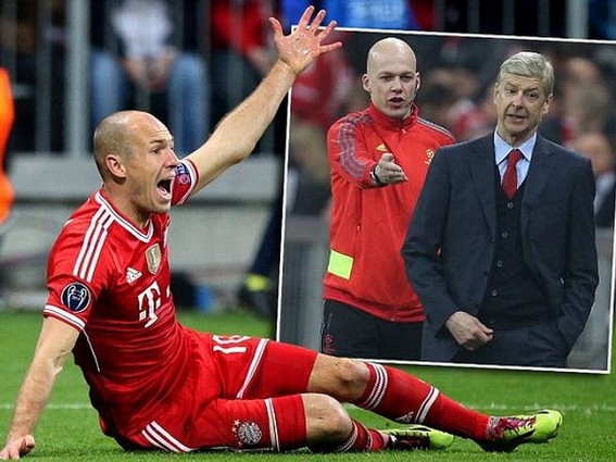 Sau trận hòa 1-1 trước Bayern, đồng nghĩa bị loại khỏi Champions League, huấn luyện viên Arsene Wenger đã tỏ ra vô cùng tức giận và gọi Arjen Robben là "chuyên gia ăn vạ."