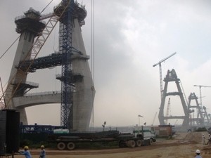 Cầu Nhật Tân cũng bị chậm tiến độ do vướng mặt bằng. Ảnh: PV/Vietnam+