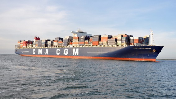 Tàu Laperouse của Hãng container CMA CGM, có trọng tải gần 160.000 tấn đi trên luồng Vũng Tàu - Thị Vải an toàn - Ảnh: Đông Hà