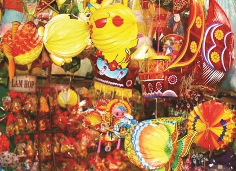 Những chiếc đèn lồng truyền thống nằm dạt sang một góc nhường chỗ cho các chiếc lồng đèn giấy nhiều màu sắc rực rỡ hơn