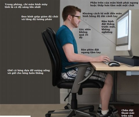 - Thường xuyên chớp mắt để mắt không bị khô khi nhìn quá lâu vào màn hình máy tính.