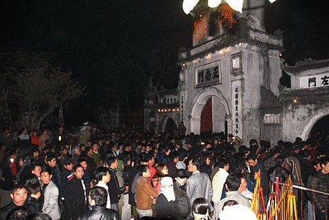 Tuy nhiên sau 23 giờ, dòng người đứng sát hàng rào sắt không còn kiên nhẫn và bình tĩnh. Những tiếng la ó bắt đầu nổi lên. Tiếng hò dô đẩy đổ hàng rào rộ lên át cả tiếng loa của Ban tổ chức. Đến khoảng 23 giờ30, nhiều thanh niên đã trèo lên hàng rào và chạy vào trong. Vòng ngoài “vỡ trận”, các vòng trong càng được siết chặt hơn khiến nhiều người trèo lên cả cây cối trước cổng đền để tránh bị xô đẩy. Phải đến khi các quan khách đã về hết thì cổng đền mới được mở cho người dân vào làm lễ.
