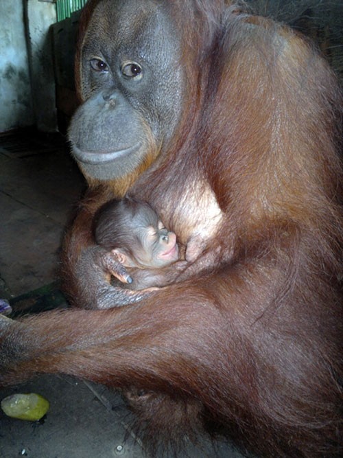 Đười ươi quý hiếm tại Đầm Sen vừa sinh con - Ảnh: C.H.