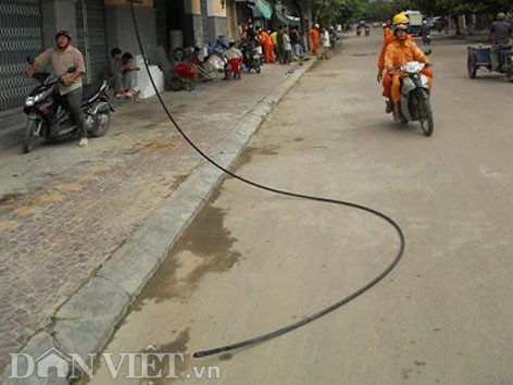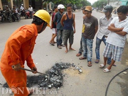 Sau khi bị nổ, đường dây điện đứt làm hai, rơi xuống lòng đường vẫn tiếp tục cháy, nổ xẹt xẹt như pháo hoa. Một đầu dây cháy làm chảy nhôm và nhựa dài khoảng 2m, vón thành những cục bám chặt xuống mặt đường...