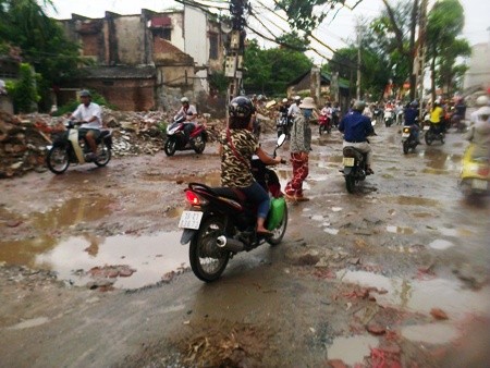 Do phải tránh những “cái bẫy” trên đường nên xe cộ chen chúc trên phần đường hẹp còn lại. Con đường vốn dành cho 2 làn xe, nhưng nhiều xe chỉ lưu thông một chiều, dẫn đến thường xuyên ùn tắc giao thông và xảy ra các vụ va chạm. Thậm chí, nhiều đoạn “ổ voi” nằm choán hết lòng đường khiến nhiều người phải xuống xe... dắt bộ để bảo đảm an toàn.