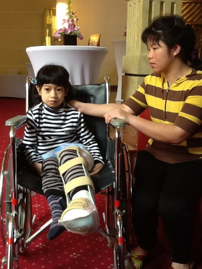 Bé Loan trông nhỏ hơn độ tuổi lên 8 của mình, ngồi lọt thỏm trong chiếc xe lăn. Ánh mắt của bé luôn lảng tránh ánh nhìn của mọi người. Có lẽ bé vẫn chưa quên được cái mặc cảm về cái chân dị dạng phải mang trong suốt 8 năm qua.
