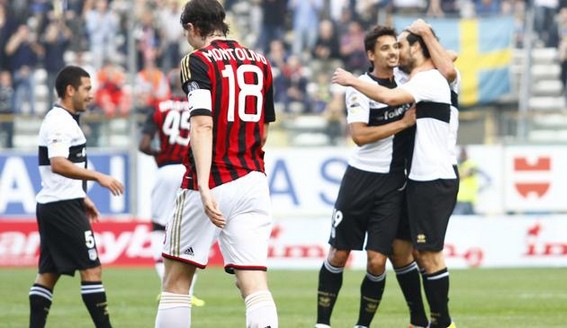 Trong khi đó, Milan bất ngờ nhận thất bại 2-3 trước Parma. Parma có hai bàn thắng dẫn trước trong hiệp 1 do công của Parolo và Cassano. Nhưng AC Milan không buông xuôi, gỡ hòa 2-2 khi Alessandro Matri và Matias Silvestre lập công trong vòng 3 phút, từ phút 61 đến 63. Tuy nhiên, những nỗ lực đó không thể giúp Milan tránh khỏi thất bại khi Parolo ghi bàn ấn định chiến thắng 3-2 cho Parma ở phút bù giờ.