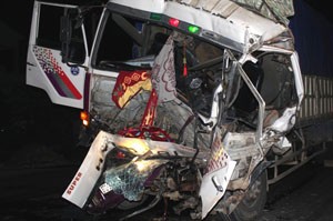 Cabin xe tải do lái xe Đạo điều khiển bị bẹp dúm