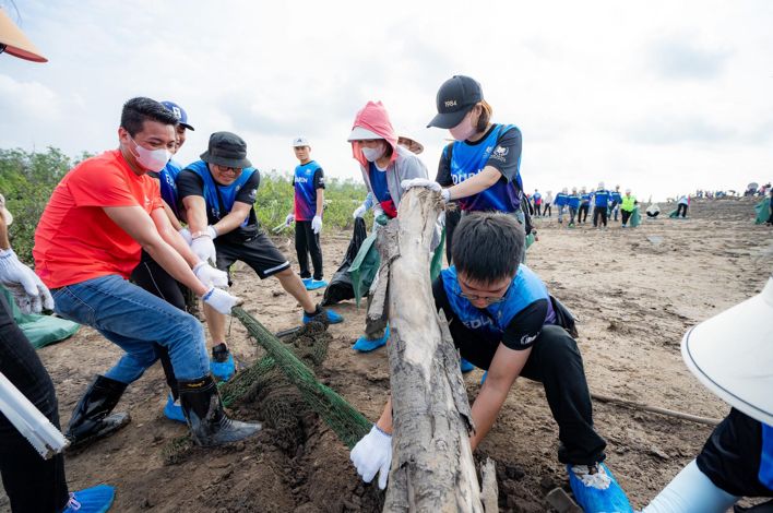 Các tình nguyện viên hăng say hành động bảo vệ sự xanh - sạch - đẹp cho bờ biển Cần Giờ