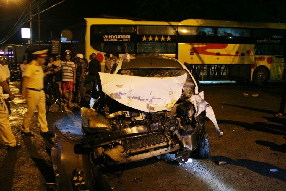 Tại hiện trường, chiếc xe taxi bị hư hỏng nặng, phần đầu xe bẹp dúm. Riêng xe khách bị hư hỏng nhẹ và không có hành khách nào bị thương.
