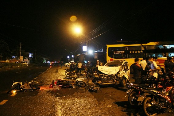 Rất may, cả 3 người chỉ bị trầy xước, hai phương tiện bị hư hỏng nhẹ.