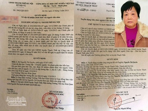 Nửa năm sau, Phạm Thị Tư giao cho chị Quyên quyết định của UBND huyện Thạch Thất về việc tuyển dụng viên chức ngành giáo dục - đào tạo năm 2012 và quyết định của Sở Nội vụ thành phố Hà Nội về việc chị Quyên chính thức vào ngạch viên chức.