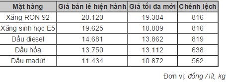 Theo đó, giá xăng RON 92 sẽ được điều chỉnh giảm xuống còn 19.304 đồng/lít; xăng E5 còn 18.809 đồng/lít; dầu diesel giảm còn 13.862 đồng/lít; dầu hoả giảm còn 13.112 đồng/lít; dầu madut giảm còn 10.872 đồng/kg.