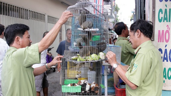 Ông Võ Văn Đức - đội trưởng đội kiểm lâm cơ động (Chi cục Kiểm lâm TP.HCM) - cho biết khi lực lượng liên ngành ập vào “lò” phân phối thú rừng của bà Gái kiểm tra thì xuất hiện nhiều đối tượng đến la ó, giành giật hòng cướp lại thú rừng, phải nhờ sự hỗ trợ của công an phường, dân phòng can thiệp mới giải cứu được các loài động vật an toàn. Riêng bà Phượng - chủ “lò” phân phối thú rừng ở Q.8 - đã bỏ trốn khi đoàn kiểm tra ập vào. Đoàn liên ngành đã lập biên bản, chuyển số động vật hoang dã về đội kiểm lâm cơ động để xử lý.