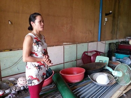Nhân chứng và nạn nhân Mai Thị Hoa đang kể lại giây phút kinh hoàng vừa qua xảy ra trong chính ngôi nnà mình