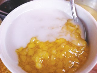 Muốn ăn chè hoa cau thật ngon thì cần phải thêm nước cốt dừa. Dừa ở vùng quê tôi không thiếu chỗ trồng, nên chỉ cần bước ra trước ngõ là đã có trái dừa già để nạo nhỏ, vắt nước cốt. Múc chén chè hoa cau vàng nhẹ còn bốc khói, rưới lên một ít nước cốt dừa, là đã có thể thưởng thức đầy đủ hương vị vừa thơm nồng nàn, vừa ngậy bùi béo, vừa rất thu hút với sắc màu bình dị. Món chè hoa cau, với tôi chỉ có thể thưởng thức ngon nhất vào mùa mưa, mới có thể cảm nhận, thẩm thấu trọn vẹn hương vị đậm đà...