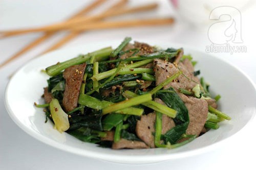 Gan xào cần tỏi là món ăn rất đủ chất dinh dưỡng, chế biến lại nhanh gọn.