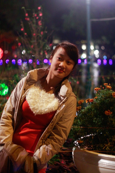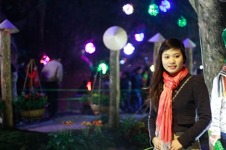 Với những loài hoa rực rỡ và những ánh đèn nhều màu sắc, các thiếu nữ tha hồ tạo dáng (Ảnh: Thành Hưng)