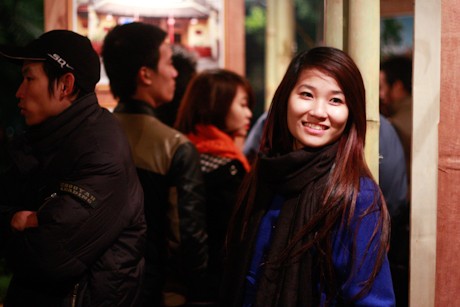 không khí đón giao thừa giữa cái lạnh của buổi tối cuối năm. (Ảnh: Hà Linh)