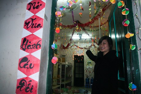 Khác với những ngày thường, tết đến, các phòng ở đều được trang trí ngay từ cửa vào (Ảnh: Thành Hưng)