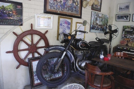 Chủ của quán “Cà phê xe cổ” là anh Trần Quang Vinh - như có sự tình cờ đến kỳ lạ - có hai đam mê lớn nhất là xe máy cổ và cà phê. Anh Vinh cho biết đã đam mê sưu tầm cổ vật từ nhỏ. Khi bắt gặp những thứ vật dụng "lạ" anh thường có ý thức phải lưu giữ nó trước hết để thoả niềm đam mê của mình. Qua nhiều năm "gom nhặt", gia tài của anh cũng "kha khá" những vật dụng có niên đại từ hàng chục năm cho đến ngót cả thế kỷ. Suốt gần chục năm miệt mài đi sưu tầm xe cổ đã giúp cho anh Vinh có một bộ sưu tập khoảng hơn 30 chiếc với đủ các loại xe vespa, lambrella, velo solec… Trong đó, nhiều nhất là các chủng loại vespa đời khác nhau, đều thuộc loại “độc” ở Việt Nam. “Tôi thích xe cổ từ bé nhưng phải đến lúc thanh niên mới có dịp hiện thực hóa đam mê ấy. Hồi đó, cứ hễ nghe ở đâu có chiếc xe nào hay hay là tôi tìm đến xem bằng được. Xem rồi, nếu đã “kết” thì kiểu gì cũng phải mua về. Có nhiều chiếc xe, chủ nhân nhất quyết không bán, tôi phải đi đi về về hàng chục lần mới thuyết phục được họ. Hơn 30 chiếc xe máy cổ tôi đang có, mỗi chiếc là một câu chuyện dài và đầy kỷ niệm”, anh Vinh kể.