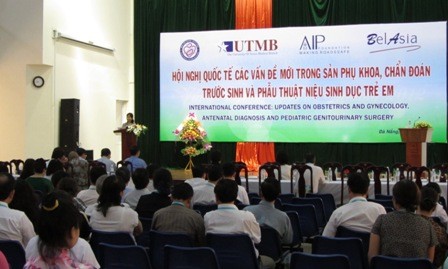 Hội thảo quốc tế các vấn đề mới trong sản phụ khoa, chẩn đoán trước sinh và phẫu thuật niệu sinh dục trẻ em với sự tham gia của các chuyên gia nước ngoài được tổ chức sáng 24/6 tại BV Phụ sản - Nhi Đà Nẵng. Ảnh Đức Hoàng