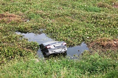 Người dân ở đây cho biết, vào khoảng thời gian trên chiếc xe con 4 chỗ hiệu Toyota mang biển kiểm soát 90A - 004.65, đang lưu thông trên quốc lộ 1A, hướng Hà Nội - Phủ Lý, khi đến khu vực ngã ba Trần Phú (giao nhau với quốc lộ 1A, thuộc địa bàn phường Quang Trung, TP Phủ Lý) do mất lái nên chiếc xe đã tông vào dải phân cách, băng qua đường tàu và lao thẳng xuống sông. Lúc này trên xe có 1 tài xế và 1 trẻ em đi cùng. Rất may, tài xế đã đập vỡ kính để thoát ra ngoài nên không có thiệt hại về người.