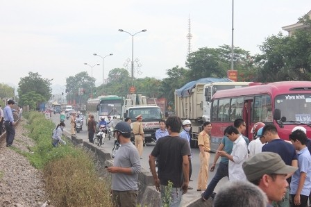 Người dân hiếu kỳ đứng xem gây ùn tắc giao thông. Ảnh: Nguyễn Trường