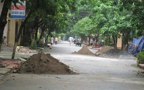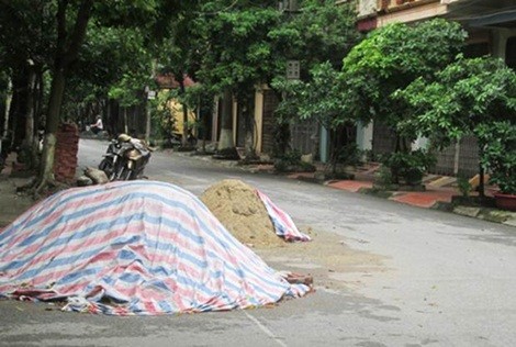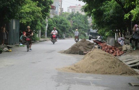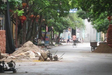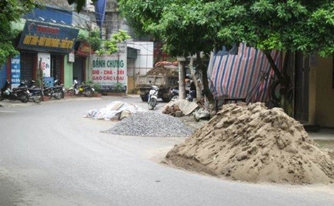 Theo ghi nhận của chúng tôi, thì nhiều hộ gia đình đang có nhu cầu tu sửa, xây lại công trình nhà ở của mình nên đã đổ vật liệu xây dựng xuống lòng đường, nhiều nơi vật liệu xây dựng tràn lan ra tới nửa đường làm ảnh hưởng đến việc đi lại của người dân.