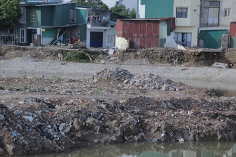 Theo quan sát của PV, phế thải xây dựng được đổ đầy ven bờ và ngày càng lấn chiếm diện tích lòng đầm. Những ngôi nhà tạm được dựng lên lụp xụp, nằm chênh vênh. Quang cảnh trong xanh vốn có của hồ đã biến mất, thay vào đó là sự nhếch nhác, mất mỹ quan nghiêm trọng.
