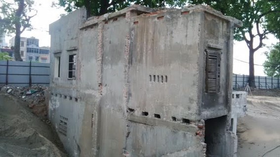 Sau khi nhận được thông tin, PV đã trực tiếp xuống hiện trường và ghi nhận một số thông tin. Hiện trạng nhà số 496 đường Bưởi chưa bị đập phá mà được quây tôn xung quanh. Tìm hiểu được biết, ngày 25/4/2015, UBND quận Ba Đình có Quyết định số 981/QĐ-UBND về việc thu hồi 55,3m2 đất do hộ gia đình bà Phạm Thị Thanh Vân và ông Trần Mạnh Đông đang sử dụng tại địa chỉ số 496 đường Bưởi, phường Vĩnh Phúc, quận Ba Đình, Hà Nội để thực hiện Dự án xây dựng đường Vành đai 2.