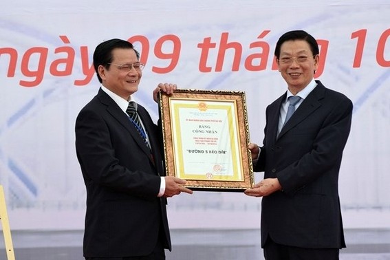Phát biểu tại buổi lễ, Phó Thủ tướng Chính phủ Hoàng Trung Hải nhấn mạnh, dự án có ý nghĩa hết sức quan trọng trong quy hoạch phát triển Thủ đô đồng thời là dự án quan trọng trong thực hiện Nghị quyết 13 của Ban Chấp hành Trung ương về phát triển kết cấu hạ tầng đồng bộ, đưa nước ta cơ bản thành nước công nghiệp vào năm 2020. Công trình là thành quả của sự nỗ lực không ngừng của cán bộ, nhân dân Thủ đô và càng có ý nghĩa hơn khi hoàn thành vào đúng dịp kỷ niệm 60 năm Giải phóng Thủ đô.