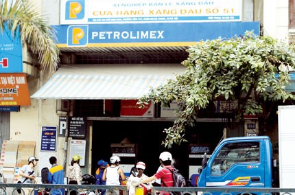 Cây xăng của Cty Xăng dầu khu vực I – Petrolimex bị kẹp chặt giữa nhà dân tại một con phố đông đúc. Ảnh: Việt Nguyễn.