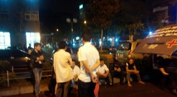 Khi chiếc xe cứu thương chở bệnh nhân đã tử vong ra đến cổng BV Việt Đức (Hà Nội) thì bất ngờ bị 3 đối tượng xông vào hành hung.