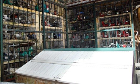 Máy bơm nước luôn được người dân bảo quản rất cẩn thận, tránh mất cắp.