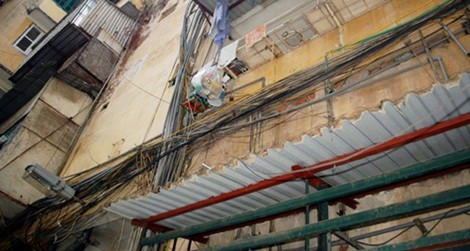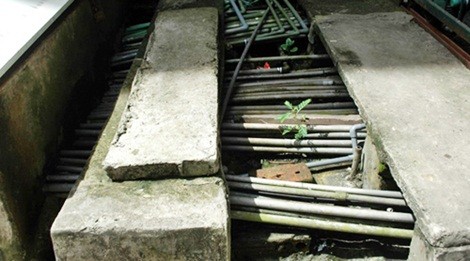 Đường ống dẫn nước thi nhau bao vây khu tập thể già cỗi này.