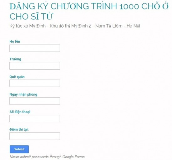 Đăng ký giữ chỗ ở KTX Mỹ Đình trực tiếp tại: http://goo.gl/forms/QItNbYvbfl