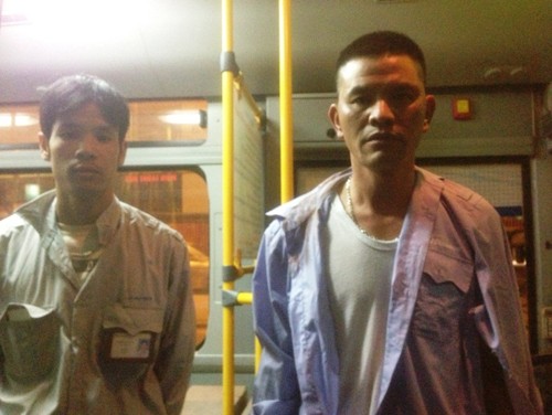 Nhân viên lái xe Đào Văn Nhân và nhân viên bán vé Phạm Quang Thọ sau khi bị hành hung