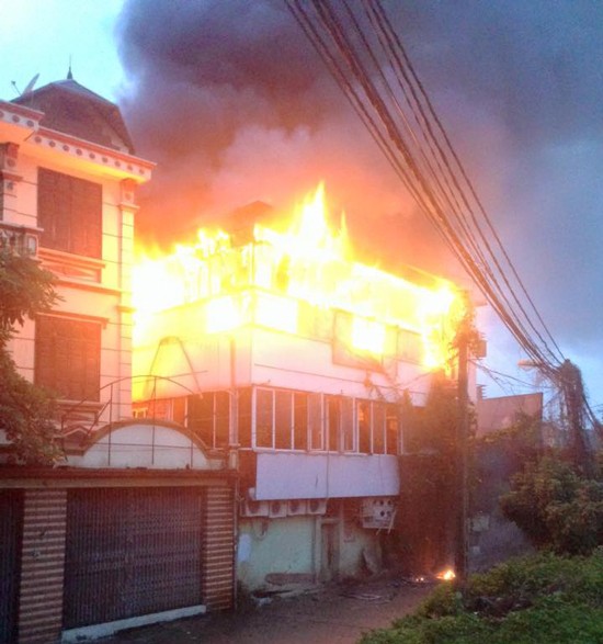 Theo ghi nhận tại hiện trường, ngọn lửa bùng phát dữ dội kèm theo khói đen bốc lên nghi ngút tại khu vực tầng 3 của tòa nhà. Được biết tầng 3 của toà nhà sàn được ốp bằng gỗ và bên trong có nhiều nội thất da, vải dễ cháy.