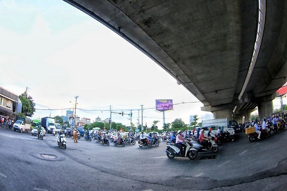 Khu vực đường Giải Phóng lúc 17h15, lượng giao thông tăng lên nhưng chưa có dấu hiệu ùn tắc