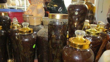 Tang vật rượu ngâm hoa, quả, lá thuốc phiện trong một vụ án tại Hà Nội thàng 12.2012.