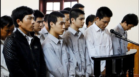 Các bị cáo bị truy tố gồm: Trịnh Xuân Thủy (SN 1996), trú huyện Yên Khánh, tỉnh Ninh Bình; Nguyễn Văn Toàn (SN 1985), trú huyện Giao Thủy, tỉnh Nam Định; Nguyễn Đức Thoại (SN 1990), trú huyện Thanh Miện, tỉnh Hải Dương; Lường Văn Chai (SN 1988), Trần Văn Thu (SN 1997), Lưu Văn Tùng (SN 1996), cùng trú tại huyện Tĩnh Gia, tỉnh Thanh Hóa; Nguyễn Hữu Chiến (SN 1996), Nguyễn Văn Thắng (SN 1988), cùng trú huyện Can Lộc, tỉnh Hà Tĩnh); Bùi Ngọc Cường (SN 1977), trú tại huyện Thọ Xuân, tỉnh Thanh Hóa; Nguyễn Thị Hằng (SN 1972), trú huyện Đông Triều, tỉnh Quảng Ninh; Nguyễn Đình Thuận (SN 1977), Nguyễn Xuân Linh (SN 1995), Phùng Thanh Chương (SN 1969), Nguyễn Trung Thành (SN 1969), cùng trú huyện Kỳ Anh, Hà Tĩnh. Số bị cáo này bị khởi tố về tội "Gây rối trật tự công cộng" theo điều 245 Bộ luật hình sự.